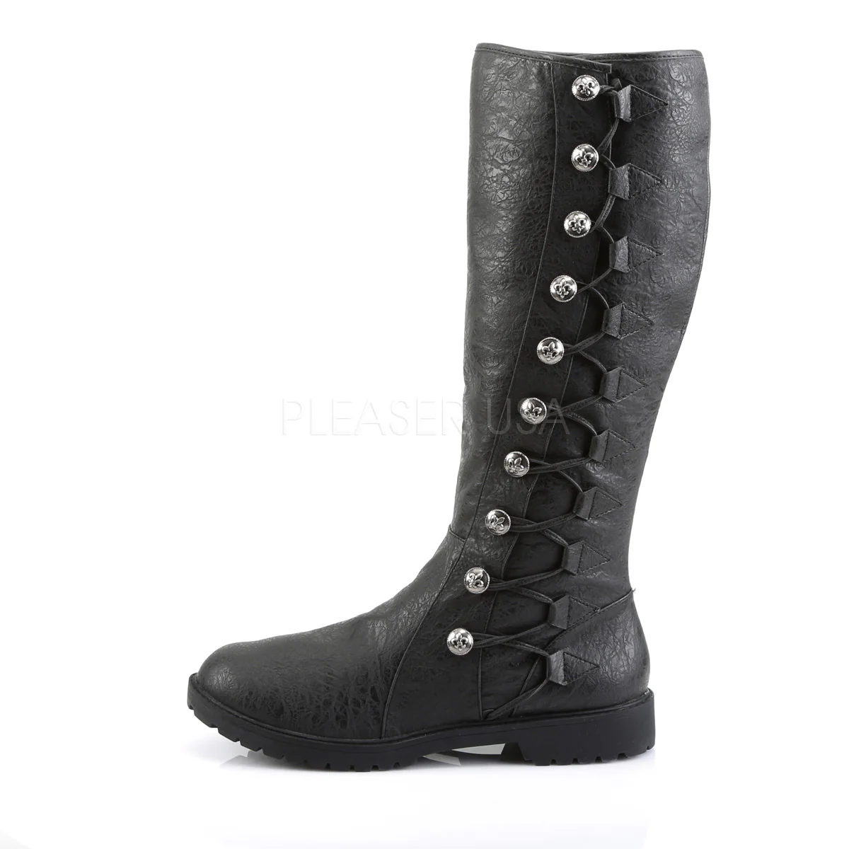 1 1/2" Heel Men's Knee High Boot w/ Button Lace-up, Zip